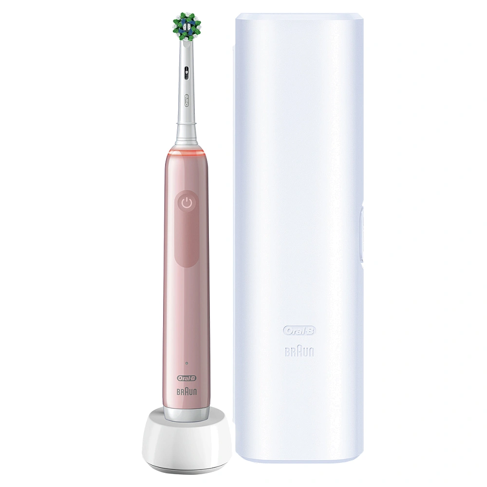 Щетка безопасна для эмали и десен, ведь встроенный 360° датчик давления загорается красным светом в том случае, если вы чрезмерно сильно давите на зубы и можете их этим повредить. Зубная щетка имеет 3 режима работы: «Ежедневная чистка», «Для чувствительных зубов» и «Отбеливание». Встроенный литий-ионный аккумулятор обеспечивает более 14 дней без подзарядки. В комплекте 1 насадка Cross Action, дорожный футляр и зарядное устройство.
