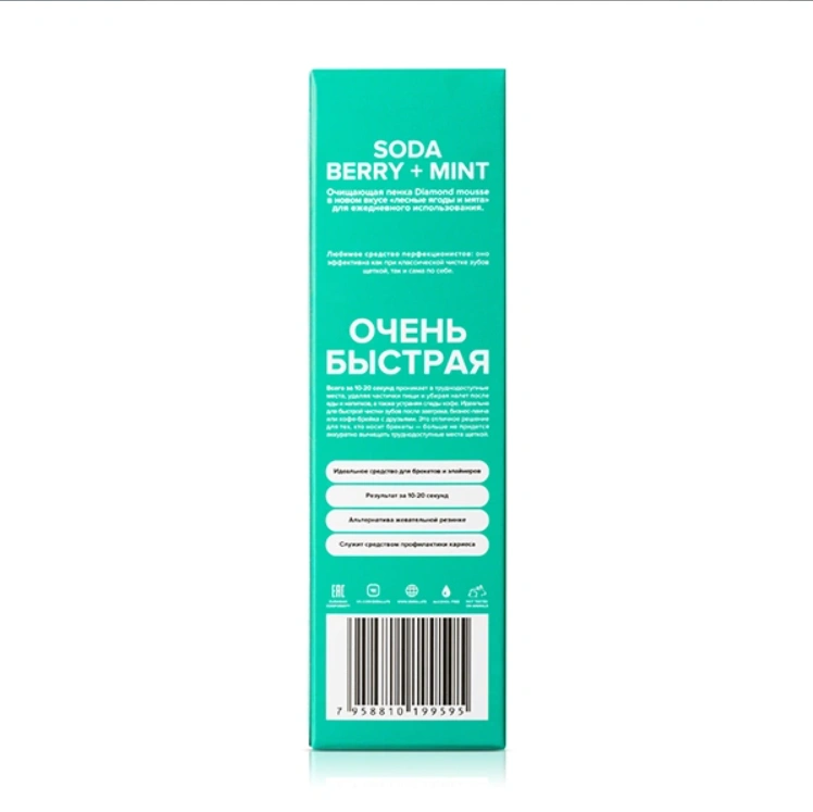 Soda Berry + Mint подходит для ежедневного применения взрослым и детям, обладает антибактериальным эффектом и не содержит вредных химических веществ.