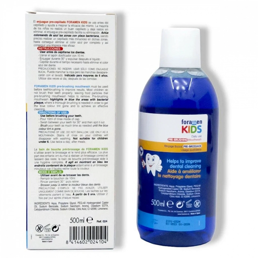 Большинство детей чистят зубы не так тщательно, оставляя частички еды на зубах, которые со временем могут создать неблагоприятную среду для размножения бактерий и развития кариеса. Это средство поможет проконтролировать качество ухода вашего ребенка. Ополаскиватель выделяет в голубой цвет те области, где есть бактериальный налет и где нужно тщательнее пройтись щеткой, чтобы счистить этот голубой индикатор. Таким образом повышается эффект от чистки и профилактика кариеса становится эффективнее.