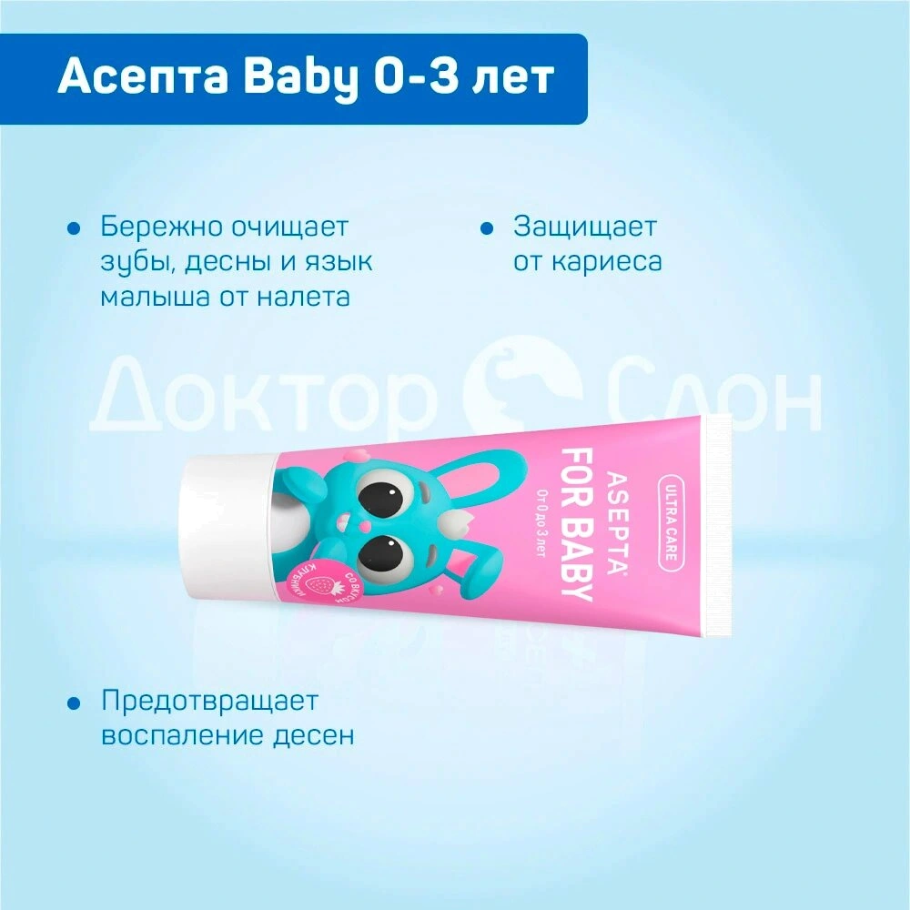 Детская гелевая зубная паста АСЕПТА Baby для бережного ухода за молочными зубами малышей от 0 до 3 лет: