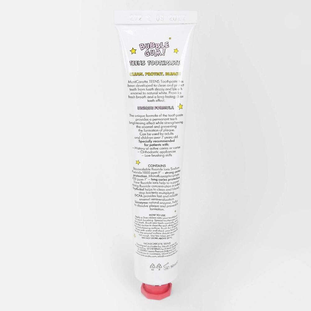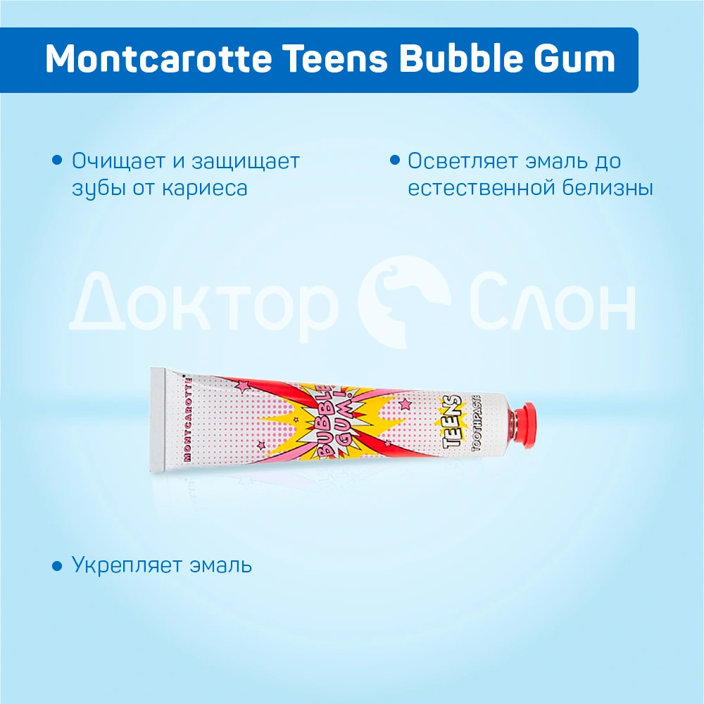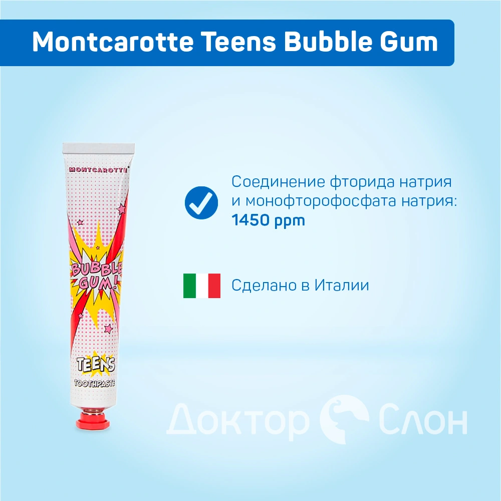 Montcarotte Tenns Bubble Gum отлично подойдет во время ортодонтического лечения - будет обеспечивать качественную гигиену полости рта. Зубная паста имеет сладкий вкус жевательной резинки.