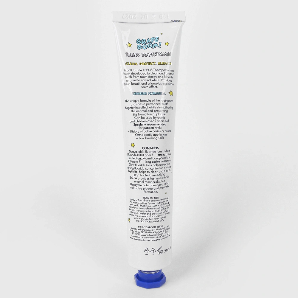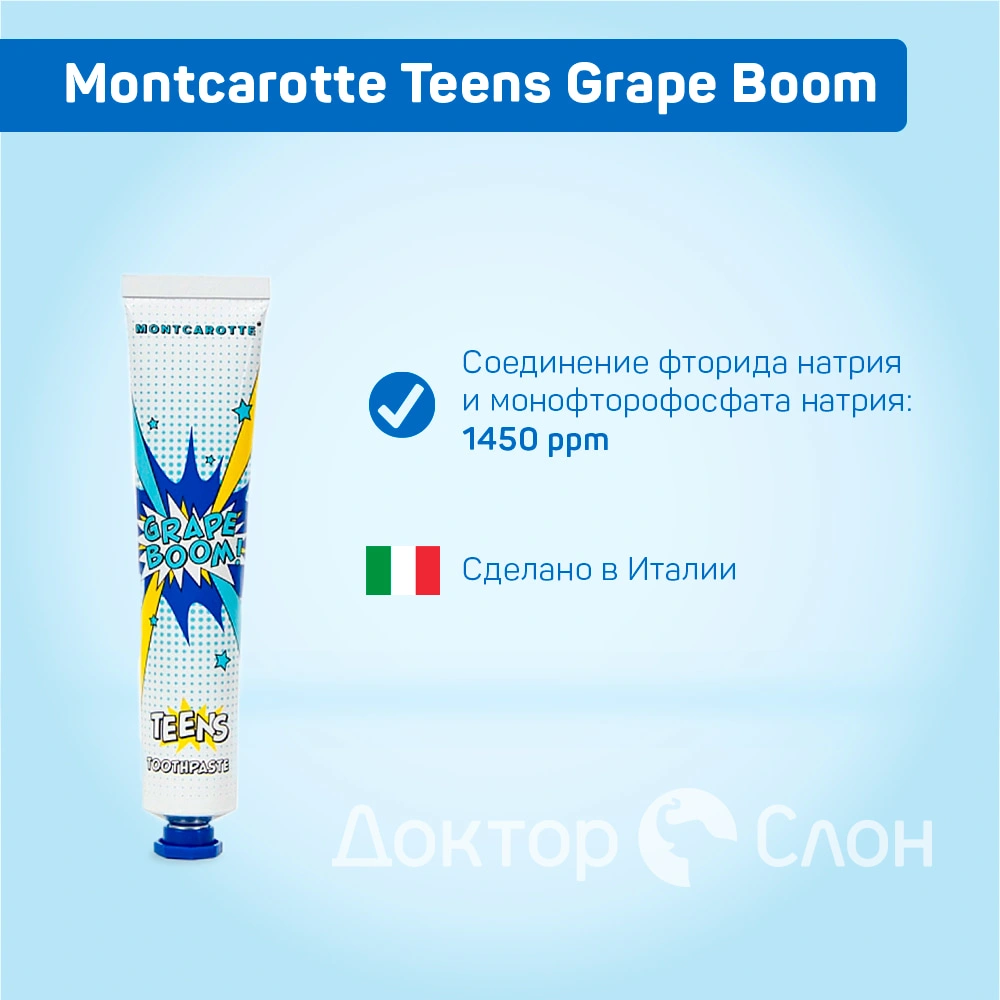 Montcarotte Tenns Bubble Gum отлично подойдет во время ортодонтического лечения - будет обеспечивать качественную гигиену полости рта. Зубная паста имеет сочный вкус винограда