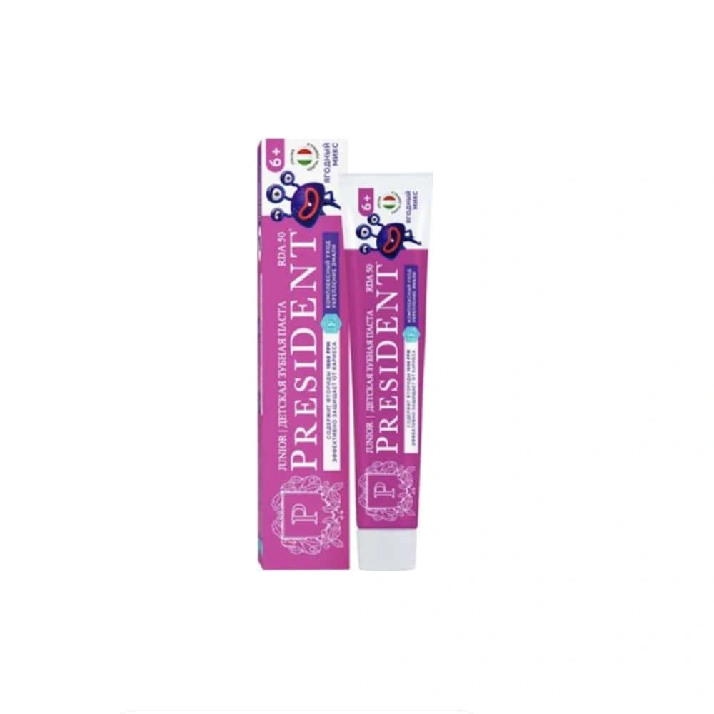 Зубная паста PRESIDENT – это гелеобразная зубная паста со вкусом ягод, разработанная специально для детей старше 6 лет. Паста обеспечивает деликатный и эффективный уход за детскими зубами, при этом не содержит агрессивных компонентов и сахара.