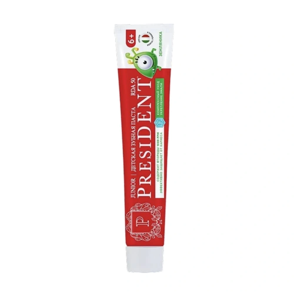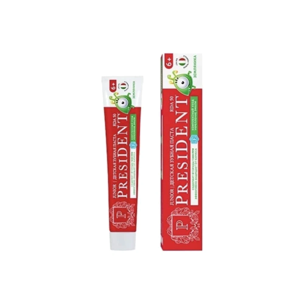 Зубная паста PRESIDENT – это гелеобразная зубная паста со вкусом земляники, разработанная специально для детей старше 6 лет. Паста обеспечивает деликатный и эффективный уход за детскими зубами, при этом не содержит агрессивных компонентов и сахара.
