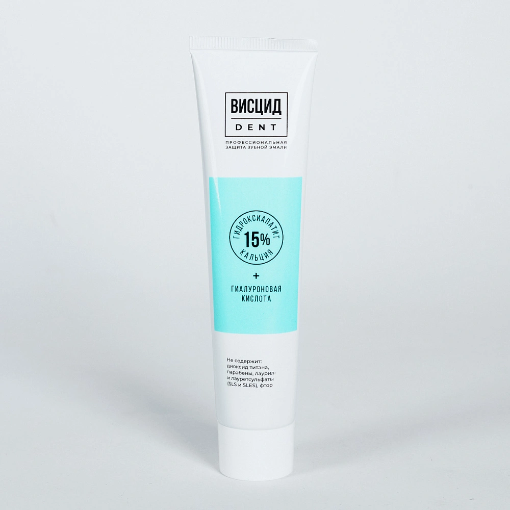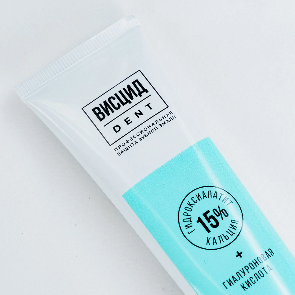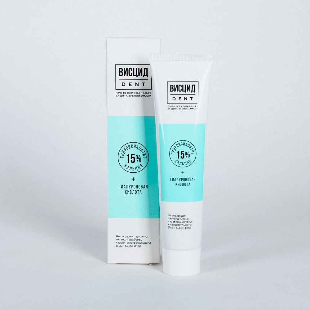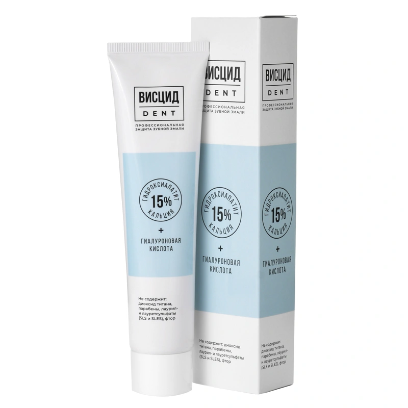 Зубная паста Висцид Dent с гидроксиапатитом и гиалуроновой кислотой предназначена для восстановления структуры эмали, очищения зубов от налета, укрепления десен, поддержки здорового баланса микрофлоры, защиты слизистой полости рта от воспаления и стоматита.