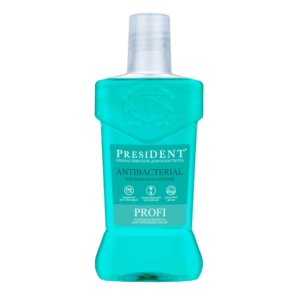 President Profi Antibacterial - оказывает противовоспалительное действие. Линия Profi (Professional) - профессиональная коллекция - коллекция специализированных средств по лечению и уходу за полостью рта. Для тех, кому нужен дополнительный уход за зубами и деснами.