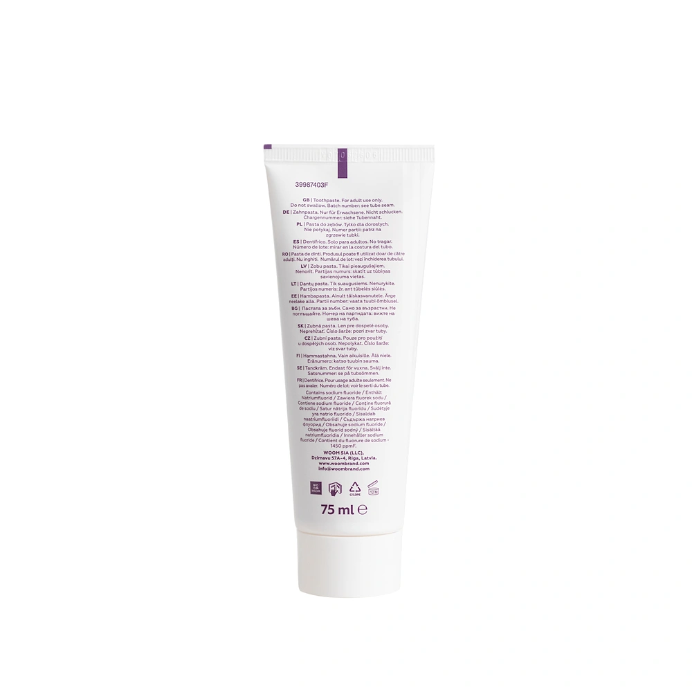 Состав: Вода, глицерин, гидратированная кремниевая кислота, ксилит, ароматизатор, ксантановая камедь, кокамидопропилбетаин, лауроилсаркозинат натрия, гидроксиапатит, фторид натрия, бензоат натрия, сахаринат натрия, глицерофосфат кальция, хлорид цетилпиридиния, ментол, масло листьев мяты зелёной, масло мяты перечной, карвон, анетол, CI 14720