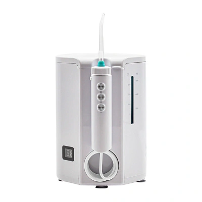 Ирригатор надёжно фиксируется на поверхности раковины благодаря ножкам с резиновыми присосками. А мощная пульсирующая струя воды очищает межзубные промежутки и массирует дёсны.